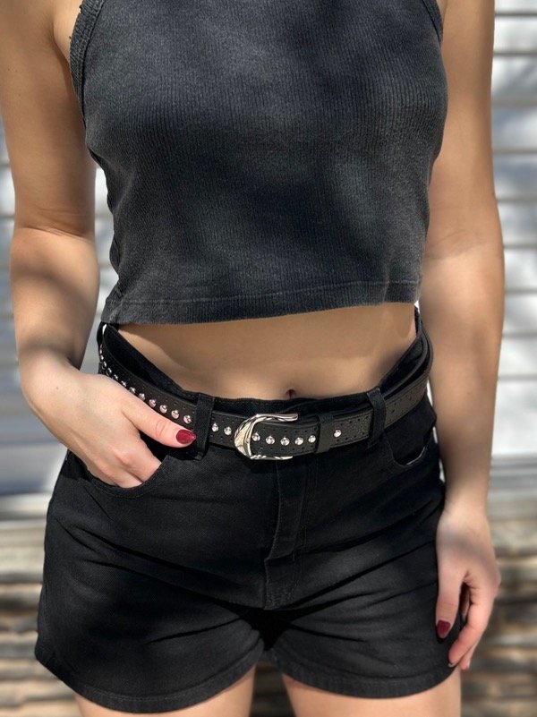 negro con tachas y hebilla plateada